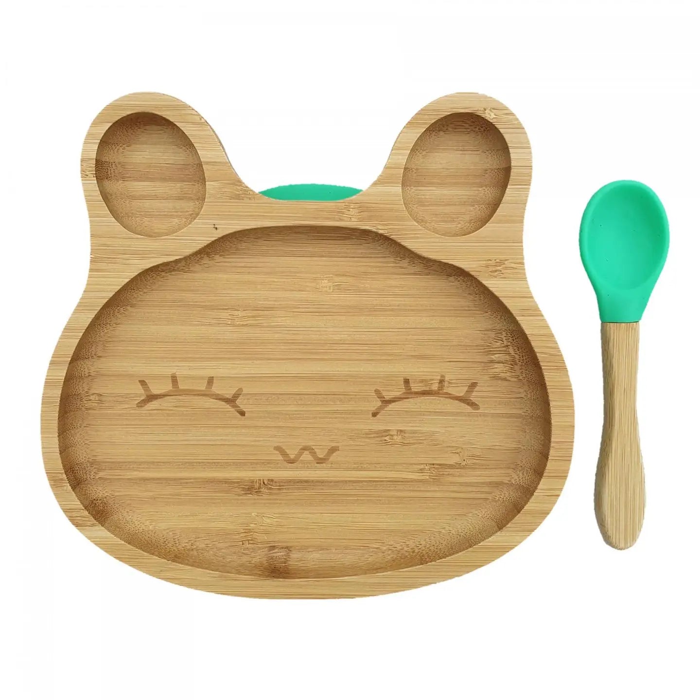 Bambukinis vaikiškas indų rinkinys „Triušis“ – žalias