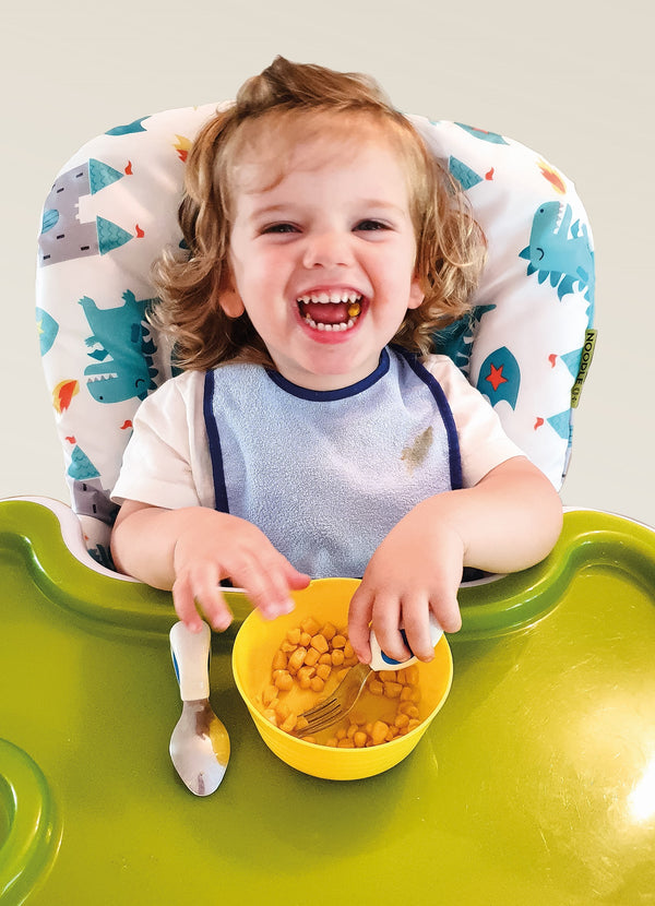 • „Doddl“ todleriu įrankių rinkinį – specialiai pritaikytus šaukštą ir šakutę, kurie padeda lavinti smulkiąją motoriką, koordinaciją ir suteikia mažyliui pasitikėjimo savimi.